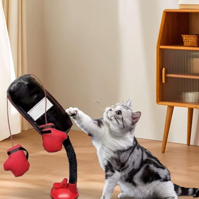 Mantieni il tuo gatto attivo, felice e intrattenuto con questo giocattolo interattivo a forma di sacco da boxe. Progettato per rimbalzare a ogni colpo, stimola il naturale istinto di caccia del tuo gatto e offre infinite ore di divertimento. I materiali resistenti e sicuri per gli animali domestici garantiscono un gioco duraturo, mentre il fluido movimento a molla mantiene il tuo amico peloso curioso e impegnato. È il modo perfetto per ridurre la noia, alleviare lo stress e aiutare il tuo gatto a rimanere sano ed energico anche quando non ci sei.