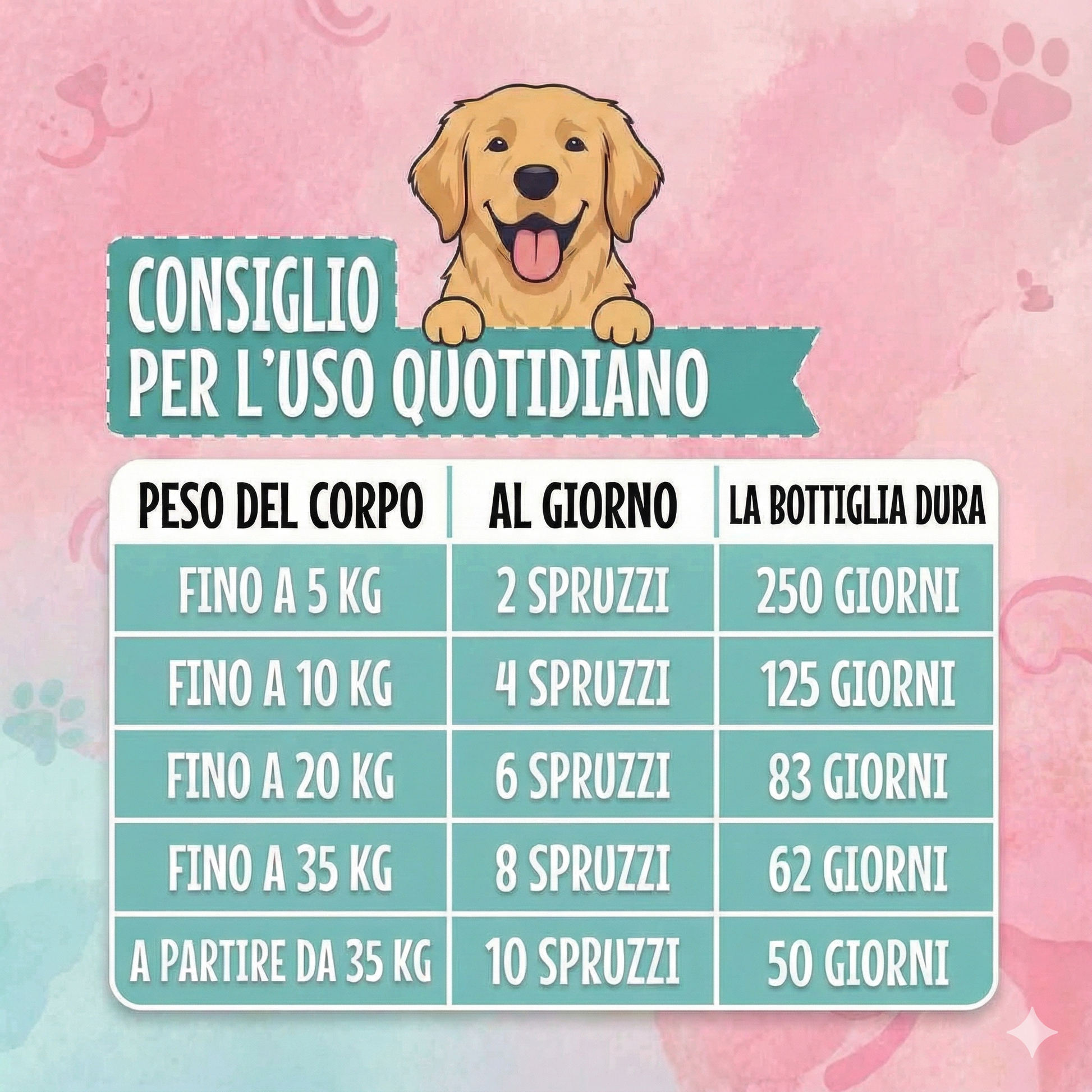 🐕 Cani di taglia media: 4 spruzzi al giorno.